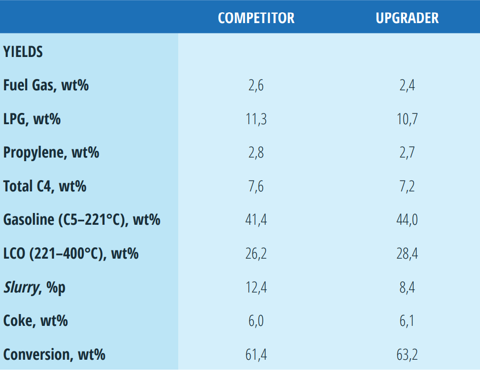 Different industrial tests in refineries in South America have demonstrated the commercial benefits of the UPGRADER™ technology. Compared to competing catalysts, UPGRADER™ enabled: