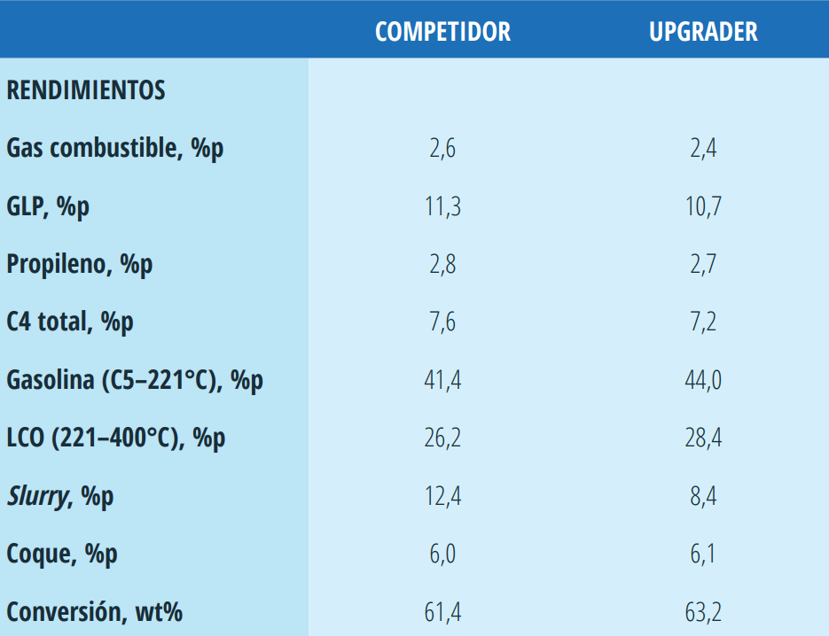 - Aumento de la conversión total de hasta 3,3% en peso, con ganancias distribuidas entre Gasolina, LCO y GLP.