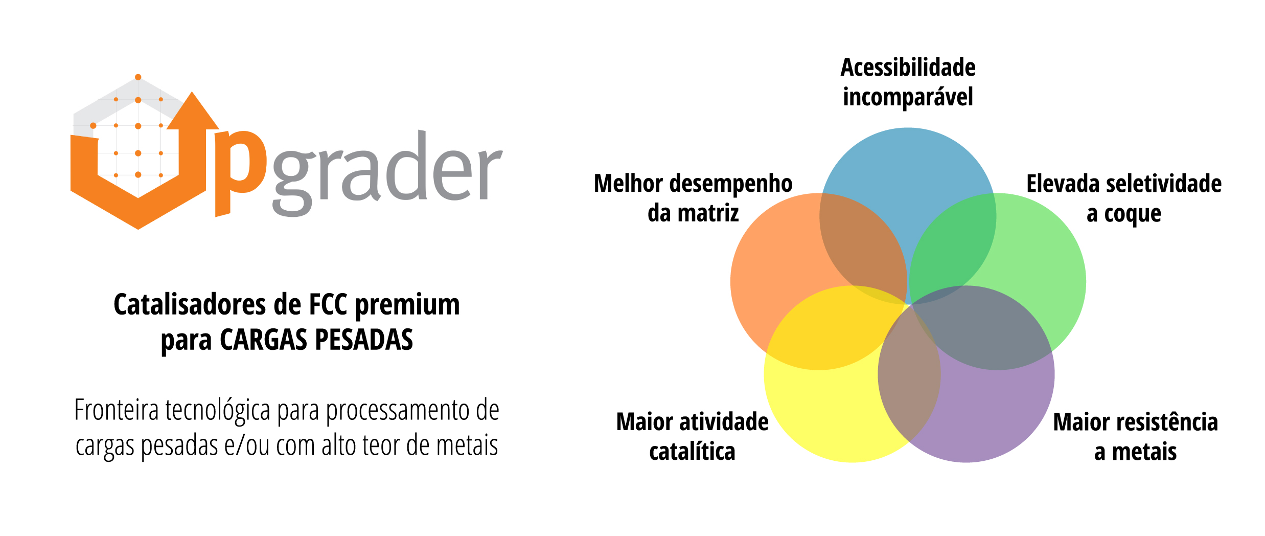 Para enfrentar essas limitações, a Fábrica Carioca de Catalisadores S.A., oferece a linha de catalisadores UPGRADER™. Esses catalisadores foram projetados especificamente com foco no craqueamento eficiente de cargas pesadas e maximização da conversão de fundos. Seu diferencial tecnológico está baseado em três pilares principais: acessibilidade elevada, matriz ativa de alto desempenho e excelente resistência à contaminação por metais como níquel, vanádio e ferro.