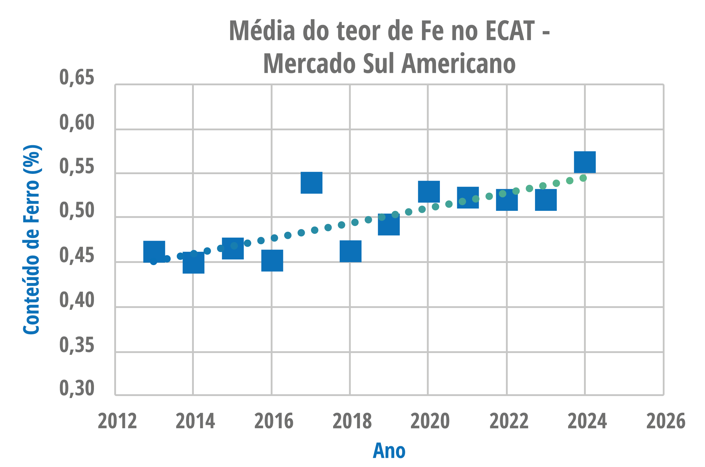 A crescente presença de ferro (Fe) nas cargas processadas tem gerado impactos relevantes sobre o desempenho catalítico em unidades de FCC. Dados de mercado indicam um aumento progressivo no teor médio de ferro acumulado no catalisador de equilíbrio (ECAT) ao longo dos últimos anos na América do Sul. Essa contaminação metálica está associada a dificuldades de fluidização, redução na acessibilidade das partículas e formação adicional de coque e hidrogênio, comprometendo a estabilidade operacional e os rendimentos da unidade. O UPGRADER™, no entanto, foi projetado com arquitetura de poros otimizada, garantindo alta acessibilidade mesmo em cenários com elevada carga metálica.