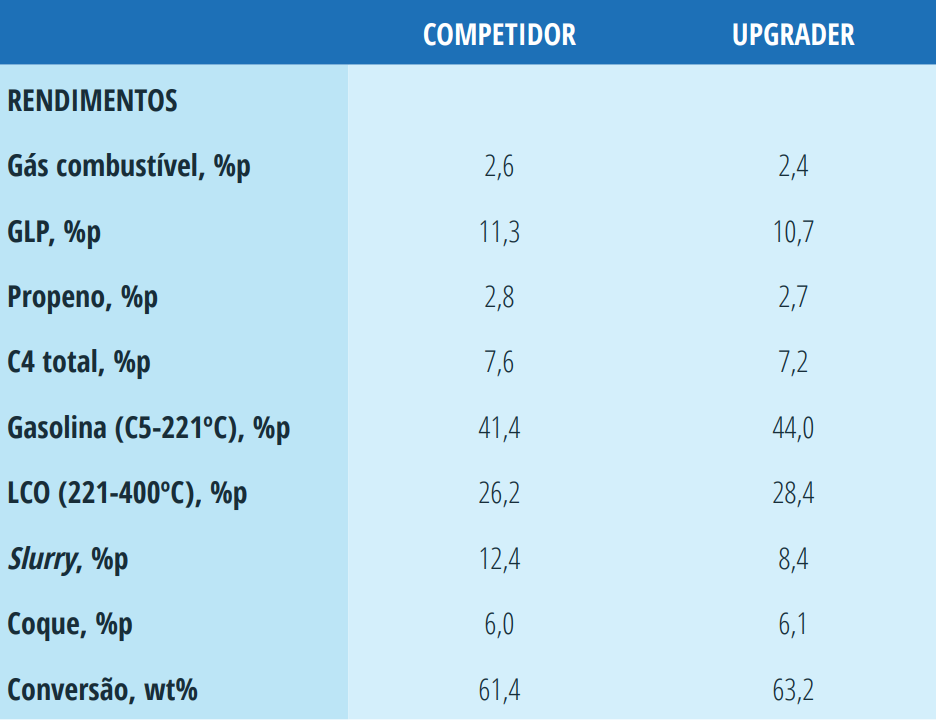 - Aumento da conversão total em até 3,3% em peso, com ganhos distribuídos entre Gasolina, LCO e GLP.
