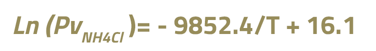 Nessa equação PvNH4Cl é a pressão parcial de NH4Cl na corrente, em kPa e T a temperatura de deposição de sal, em K.